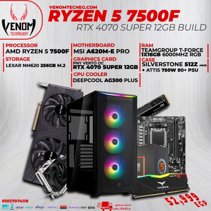 This carefully selected PC hardware AMD RYZEN 5 7500F + PNY RTX 4070 SUPER 12GB bundle is designed for gamers and creators who need performance, efficiency, and value. Each component has been chosen to deliver exceptional results, ensuring a seamless and immersive experience for modern workloads and AAA gaming.
